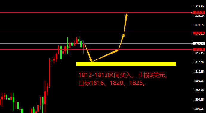 1812-1813区间买入,止损3美元,目标1816、1820、1825。