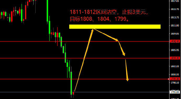1811-1812区间沽空,止损3美元,目标1808、1804、1799。