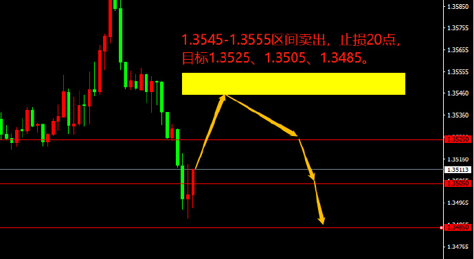1.3545-1.3555区间卖出,止损20点,目标1.3525、1.3505、1.3485。