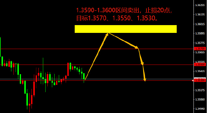 1.3590-1.3600区间卖出,止损20点,目标1.3570、1.3550、1.3530。