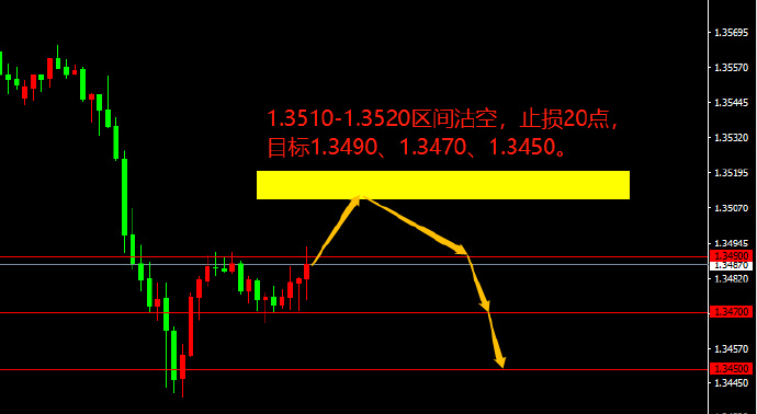 1.3510-1.3520区间沽空,止损20点,目标1.3490、1.3470、1.3450。