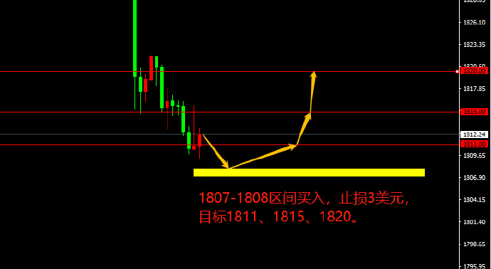 1807-1808区间买入,止损3美元,目标1811、1815、1820。