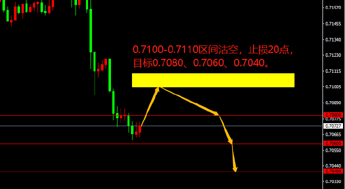 0.7100-0.7110区间沽空,止损20点,目标0.7080、0.7060、0.7040。