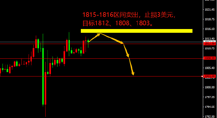 1815-1816区间卖出,止损3美元,目标1812、1808、1803。