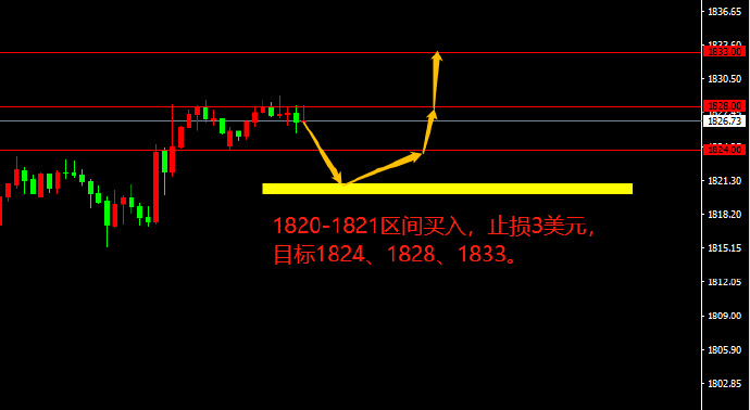 1820-1821区间买入,止损3美元,目标1824、1828、1833。