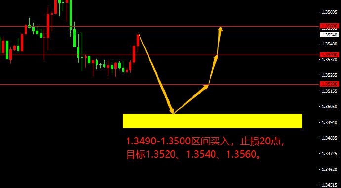 1.3490-1.3500区间买入,止损20点,目标1.3520、1.3540、1.3560。
