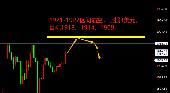 1921-1922区间沽空,止损3美元,目标1918、1914、1909。