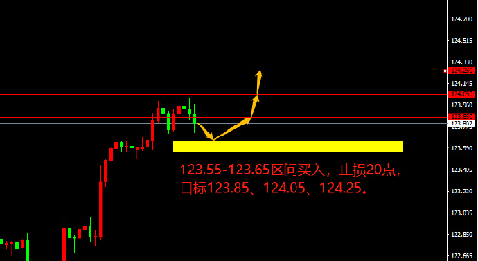 123.55-123.65区间买入,止损20点,目标123.85、124.05、124.25。