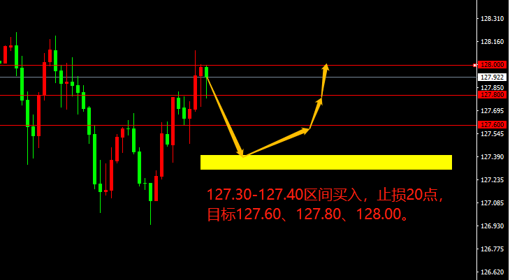127.30-127.40区间买入,止损20点,目标127.60、127.80、128.00。