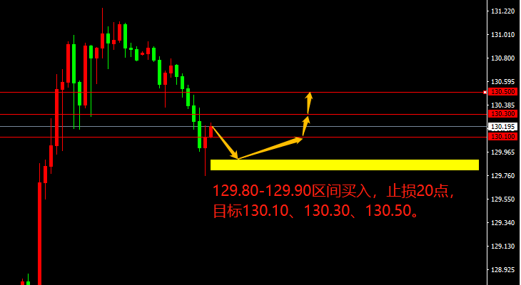 129.80-129.90区间买入,止损20点,目标130.10、130.30、130.50。
