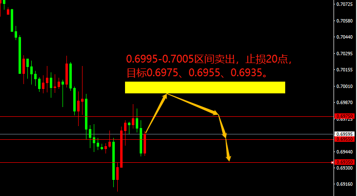 0.6995-0.7005区间卖出,止损20点,目标0.6975、0.6955、0.6935。
