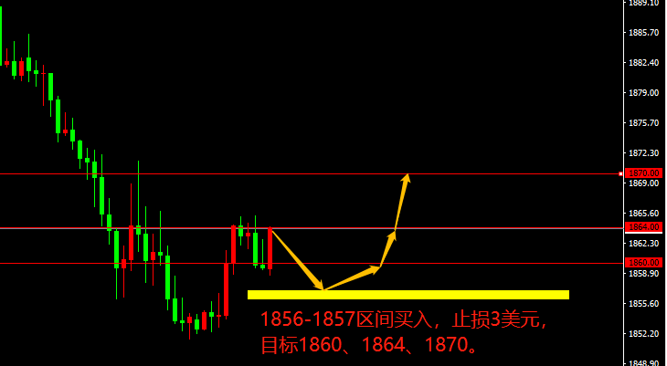 1856-1857区间买入,止损3美元,目标1860、1864、1870。