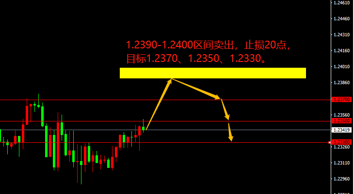 1.2390-1.2400区间卖出,止损20点,目标1.2370、1.2350、1.2330。