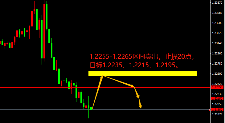 1.2255-1.2265区间卖出,止损20点,目标1.2235、1.2215、1.2195。
