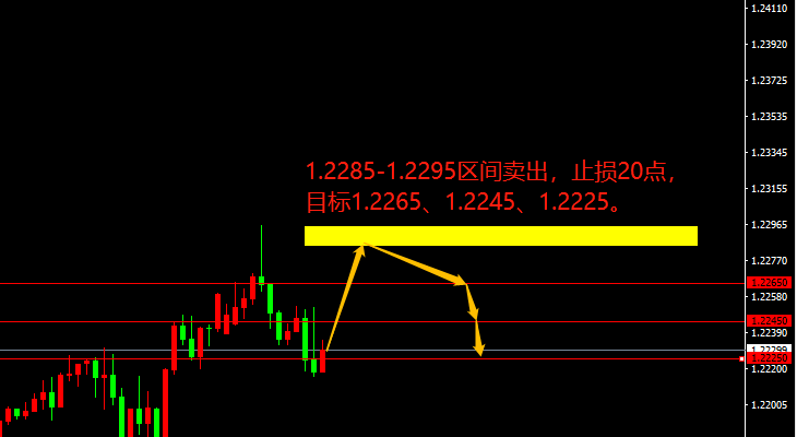 1.2285-1.2295区间卖出,止损20点,目标1.2265、1.2245、1.2225。