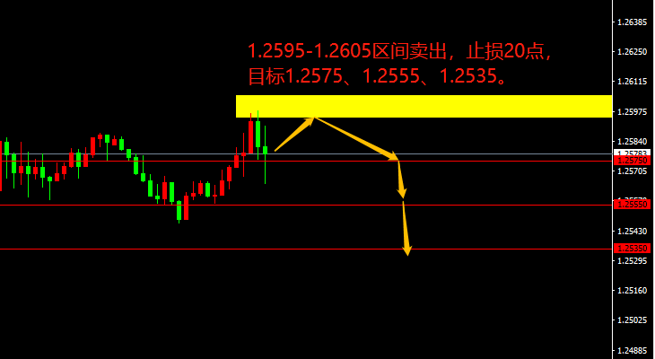 1.2595-1.2605区间卖出,止损20点,目标1.2575、1.2555、1.2535。