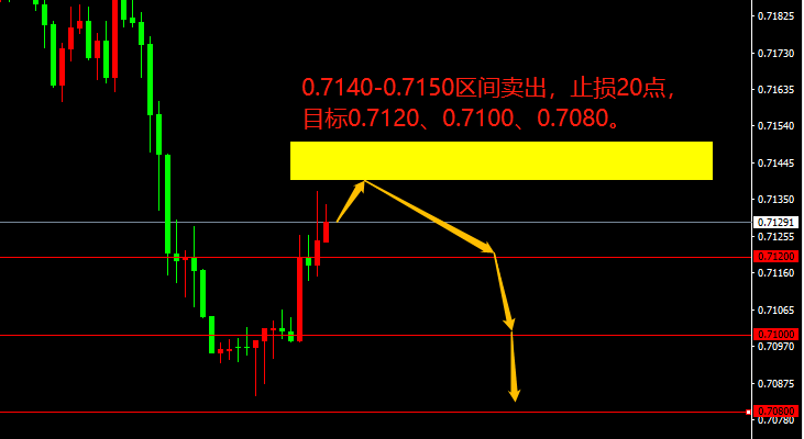 0.7140-0.7150区间卖出,止损20点,目标0.7120、0.7100、0.7080。