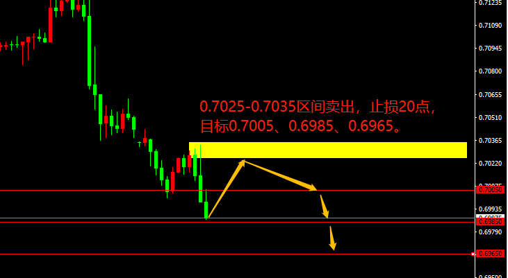 0.7025-0.7035区间卖出,止损20点,目标0.7005、0.6985、0.6965。