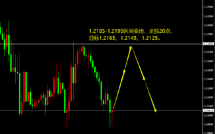 1.2185-1.2195区间卖出,止损20点,目标1.2165、1.2145、1.2125。