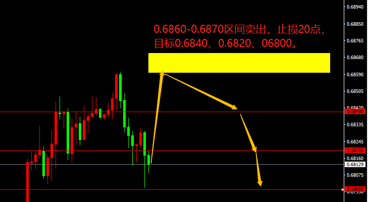 0.6860-0.6870区间卖出,止损20点,目标0.6840、0.6820、06800。
