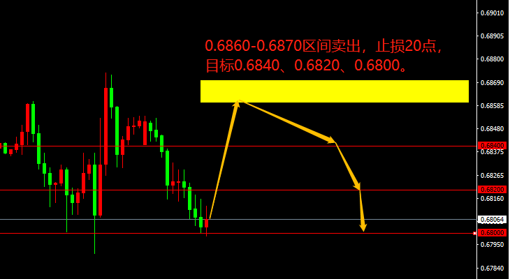 0.6860-0.6870区间卖出,止损20点,目标0.6840、0.6820、0.6800。