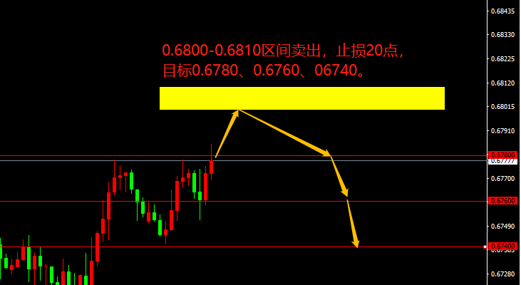 0.6800-0.6810区间卖出,止损20点,目标0.6780、0.6760、06740。