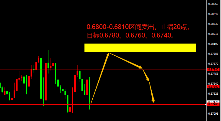 0.6800-0.6810区间卖出,止损20点,目标0.6780、0.6760、0.6740。