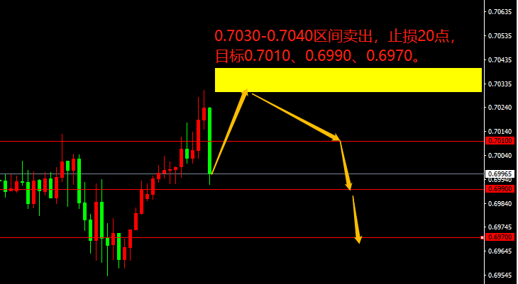 0.7030-0.7040区间卖出,止损20点,目标0.7010、0.6990、0.6970。