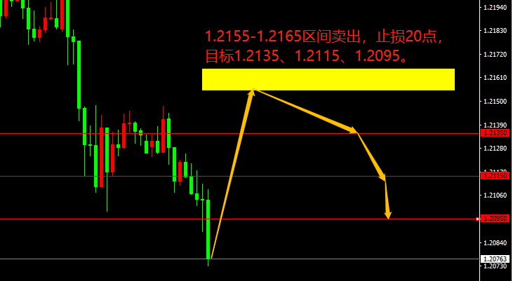 1.2155-1.2165区间卖出,止损20点,目标1.2135、1.2115、1.2095。