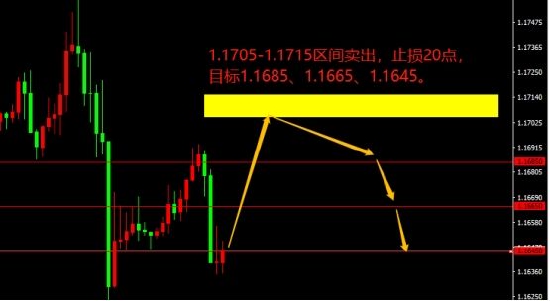 1.1705-1.1715区间卖出,止损20点,目标1.1685、1.1665、1.1645。