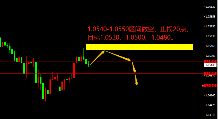 【校立观点】: 可以看到,美元指数在昨日走出了一波先扬后抑行情,价格最高触及105.54附近,随时突然掉头向下,直接把涨幅完全吃完,导致日线图收定为一根带上影的阴线形态,这个形态其实叫做单线反转,是顶部定式信号射击之星的延伸,倘若这个信号出现在有效的顶部区间,那么对盘面的指引就会非常清晰,因为这是