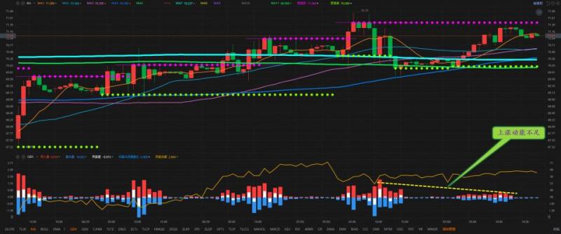 通过对原油小时图解析得知,昨日行情在下方均线支撑位止跌反弹,晚间再次到达上方71.30附近冲高回落,我们从下方的幅图中可以清楚地看到多头主力的上涨意愿有些不足虽然短期处于强势的状态非常有可能再次冲高回落毕竟整体属于反弹动作但是哦按总不排除进一步的反弹,短期上方我们继续重点关注71.60的压力即可下方70.00的支撑即可,短期在操作上我们继续高空低多思路,具体建议如下: