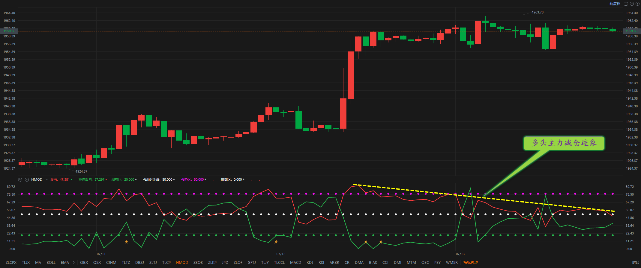 通过对黄金小时图解析得知,昨日行情一直在高位窄幅震荡运行进行技术性修复动作但是我们从下方的幅图可以清楚地看到多头主力在高位有减仓迹象但是整体依然占优处于高度控盘迹象,短期属于回落调整动作,下方我们继续关注1950和1939的支撑即可,相对而言下方已经成为短期的支撑,短期上方1969一线依然是短期主要的压力位盘中不排除进一步反弹到1980上方,短期回调一下对后期的上涨力度更大,在操作上我们暂且继续高空低多思路,具体建议如下: