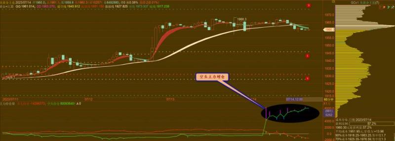 通过对黄金小时图解析得知,黄金从早盘到目前为止冲高回落,依然是处于窄幅震荡调整阶段,近2个交易日在压力位附近来回震荡调整,但是我们从下方的附图可以清楚地看到,在今天反弹之上方1963.5一线的时候出现了大量的空头主力增仓动作目前并且已经走强并且占优,虽然行情还没有深度调整动作,预计美盘时间段将会出现一波回落动作,下方重点关注12号的支撑即可,在操作上我们继续高空低多思路,具体建议如下: