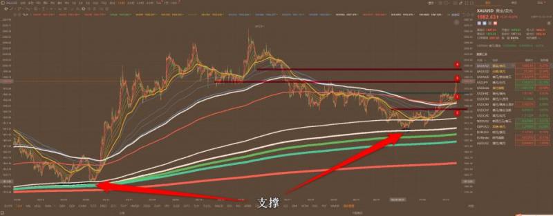 通过对黄金小时图和4小时图解析得知,前期在地板1615一线得到重要均线的支撑在下方出现超级主力抄底动作行情一路狂飙最高到达2070附近,在4小时图中回落下方重要均线1800一线也是出现了超级主力抄底的信号,前期都有短信专门通知过,近期小时级别从2072一线冲高回落最低到达下方1894一线,小妹在1900一线也有专门通知过,到达目前现在1987一线的位置已经到3号位置的压力位,短期下方1号的突破位以及下方2号突破位已经成为短期的重要支撑位,上方4号压力位也是比较关键的位置,短期预期先回落调整到下方1号支撑位(1963附近)对后期的上涨起到推波助澜的作用,但是不排除数据影响到达下方2号强支撑位置(1935一线),短期在操作上我们继续高空低多思路,具体建议盘整通知