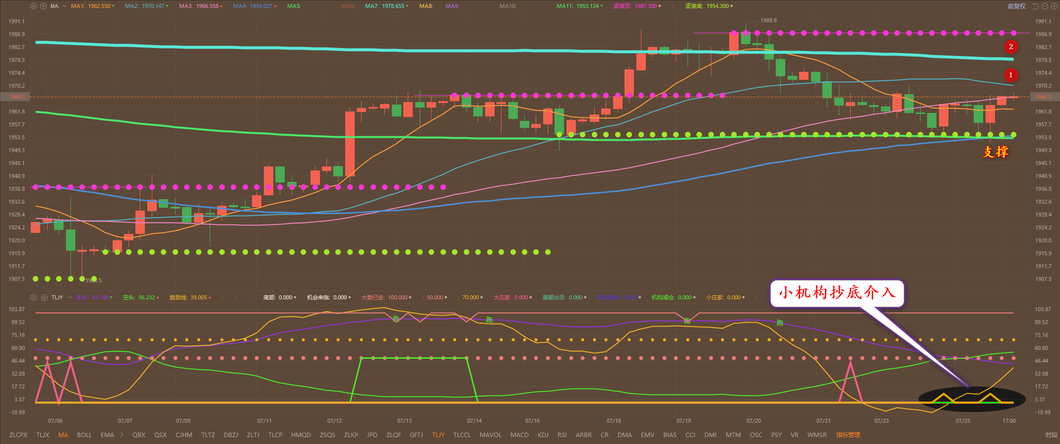 通过对黄金4小时图解析得知,昨日行情先跌后涨,晚间到达1951一线的均线支撑位止跌反弹目前再次到达1966一线,我们从下方的幅图可以清楚地看出在均线支撑位出现了小机构连续增仓信号和昨日在盘中通知多头主力资金不断的增仓介入,从而导致行情的拉升,但是短期依然是在上方均线的压力下方运行,上方我们重点关注12号均线的压制即可,下方我们继续重点关注下方的支撑,在操作上我们继续高空低多思路,具体建议如下: