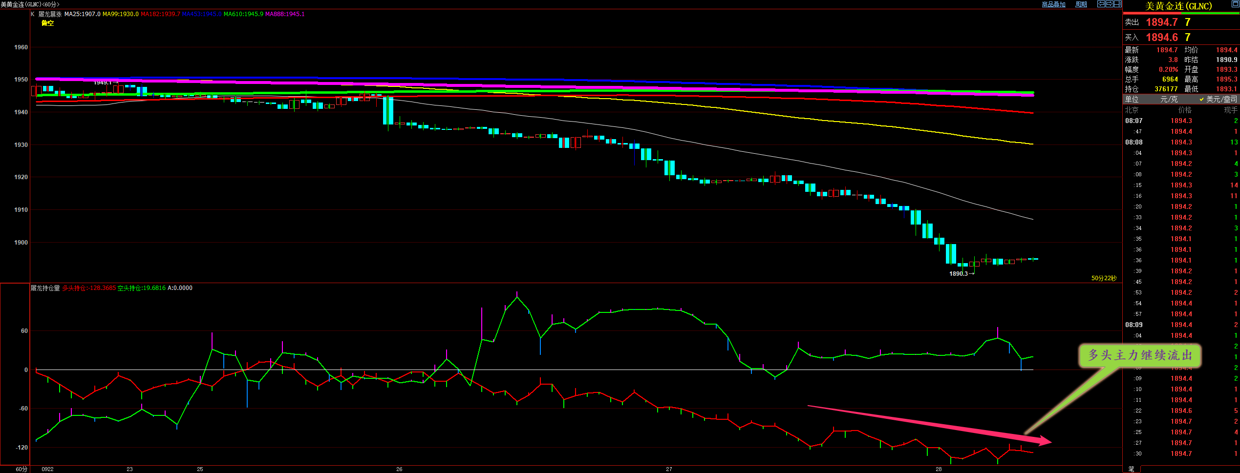 通过对原油2小时图解析得知,昨日行情继续延续上涨行情进一步突破创新高,近期价格交易日行情之所以会进一步创新高我们从下方的幅图可以清楚地看到在前期反弹到高位多头主力有拉高出货动作回落调整期间进行了横盘震荡期间多头主力不断的增仓介入到目前为止多头的增仓势头未减,从而导致行情进一步的上行突破,短期下方92.50一线已经成为支撑,上方我们重点关注前期的反弹高点97.80一线压力,短期在操作上我们继续重点逢低做多,具体建议如下: