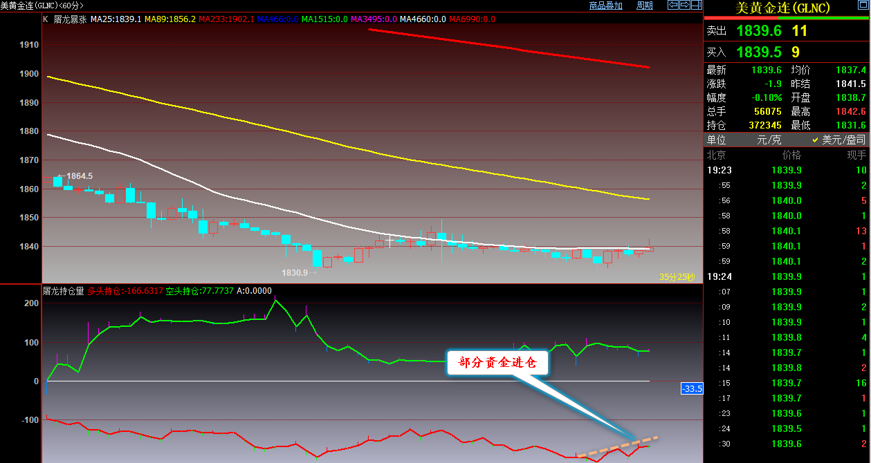 通过对黄金小时图解析得知,黄金从早盘到目前为止继续窄幅震荡运行我们从下方的附图可以清楚到有一部分多头主力资金进仓动作,但是空头主力依然是处于绝对控制盘的状态,短期的反弹构不成反转在操作上,我们继续重点逢高做空,具体的参考早盘策略即可