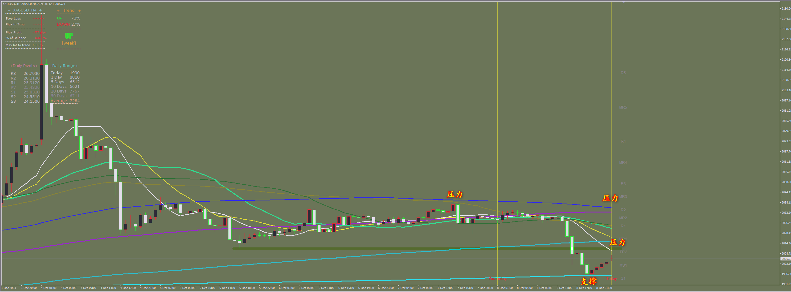 通过对黄金小时图解析得知,是一个交易日晚间再次放量跌破下方2009一线的支撑到达下方1996一线的均线支撑止跌反弹目前依然反弹过程中,我们从图中可以清楚地看到上周反弹到上方均线压力位受阻回落,目前反过来前期止跌反弹的位置2009一线已经成为短期的压力位短期的这种加速下跌说明短期行情即将介入尾声非常有见底迹象但是也不排除进一步下探到1982一线,短期在操作上我们继续高空低多思路,具体建议如下: