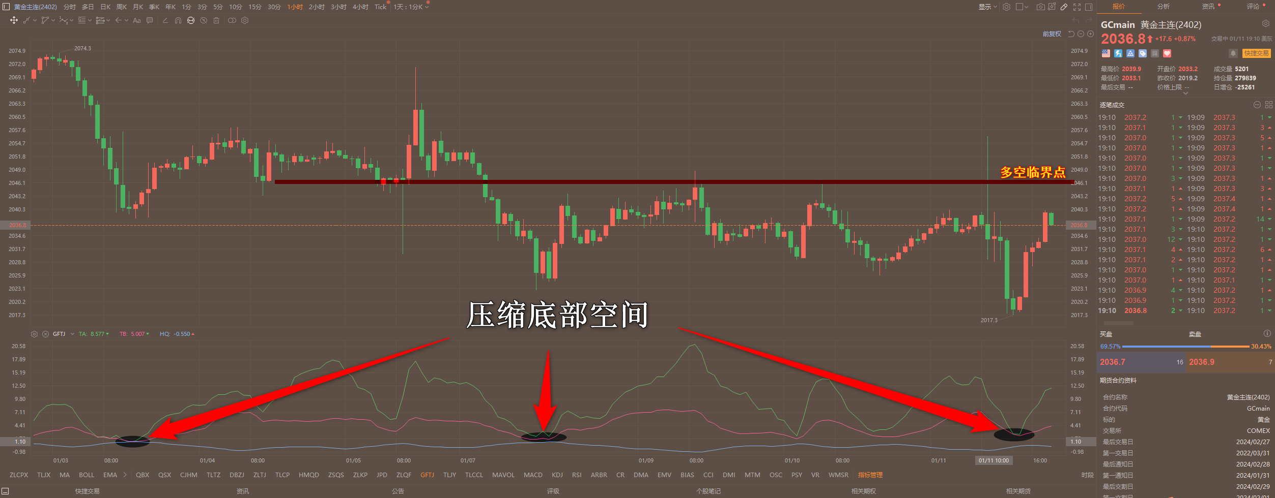 通过对黄金小时图解析得知,昨日行情先涨后跌再上涨,盘中再次形成窄幅震荡调整走势,晚间一度到达下方2013一线附近,我们从下方附图可以清楚的看到晚间这次出现筹码的压缩,我们从历史经验中发现压缩空间一旦形成并且到达极限就会出现急速反弹动作,在前期基础底部区域的时候都相对而言出现了不错的反弹动作,昨日晚间再次出现。目前已经小幅反弹一波。短期上方我们继续重点关注上方2043一线的多空临界点对后期进一步的拉升起到支撑作用,短期在操作上我们继续先高空低多思路具体建议如下: