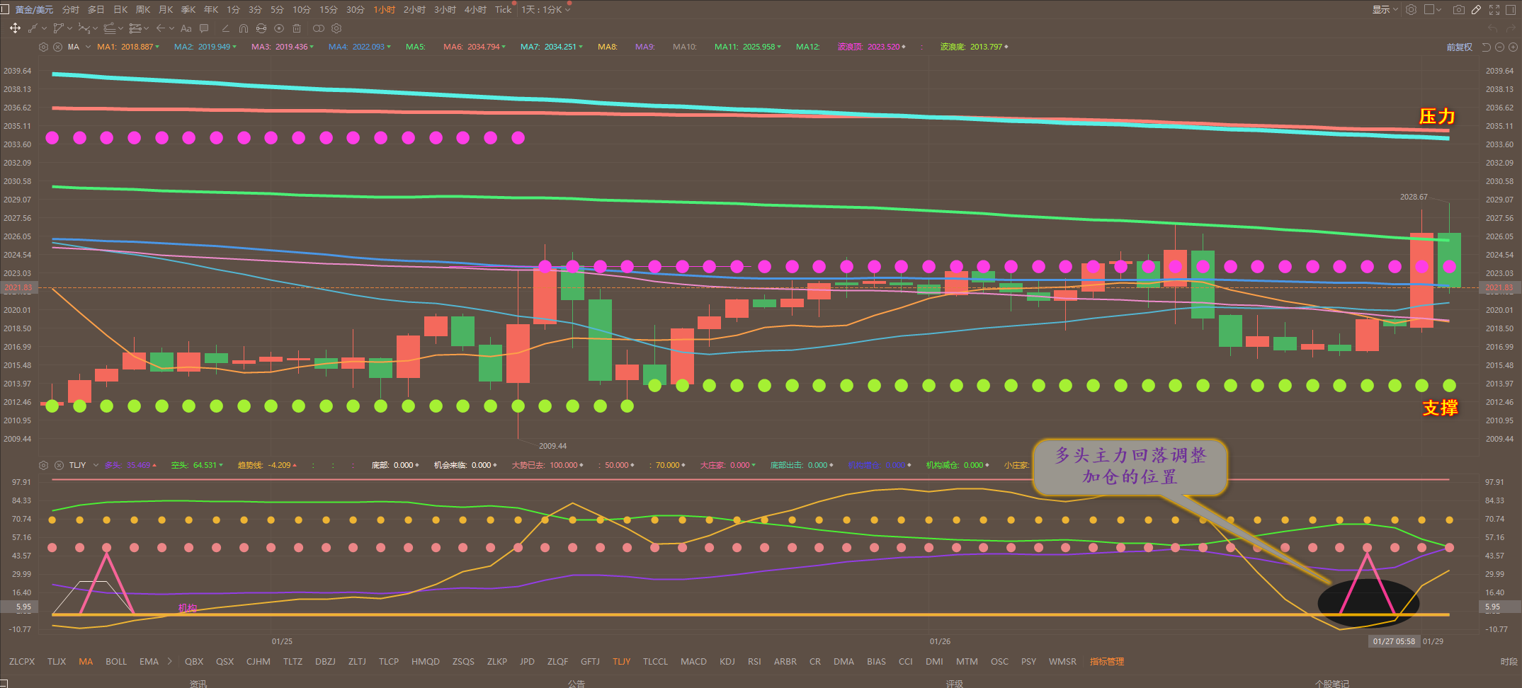 通过对黄金小时图解析得知,上一个交易日行情先涨后跌,晚间在下方2016附近止跌企稳,今日早盘受外围数据影响高开一度突破2025一线的压制,目前有所回落调整,我们从下方的附图可以清楚的看到在上一个交易日2016附近出现了回调买入信号,加上今日的数据的影响顺其自然上涨突破,短期上方我们继续重点关注2035一线的压制,下方我们继续重点关注2014一线的支撑,短期在操作上我们继续高空低多思路,重点逢低做多,具体建议如下: