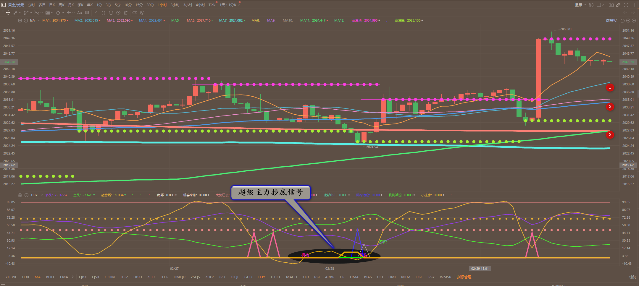 通过对黄金小时图解析得知,昨日行情先跌后涨,如期启动行情,在上一个交易日当中就已经专门通知过,行情已经拒绝下跌下方的均线系统已经起到关键性作用,昨日晚间借助数据拉升突破近期的压力位2038一线,目前已经反过来仓位第一支撑(1号均线),短期上涨空间已经打开,短期将会继续向上震荡上行突破,但是不排除意外继续回落调整,短期下方我们重点关注23号的均线支撑,短期在操作上我们继续重点逢低做多,具体建议如下: