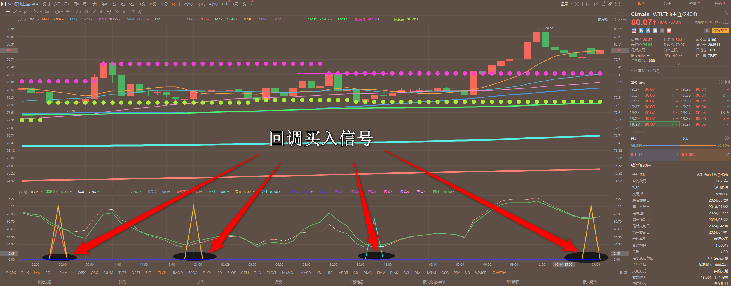 通过对原油小时图解析得知,上一个交易日原油继续延续上涨走势到达上方80.90一线冲高回落,我们从下方的附图可以清楚地看到短期下方已经再次出现回调买入信号,在上周就已经多次提醒短期下方出现回调买入信号,短期原油将会继续沿着均线系统震荡上行突破,短期下方我们重点关注79.60和78.60一线的支撑,上方我们继续关注80.90和82.20一线的压制,在操作上我们继续重点逢低做多,具体建议如下:
