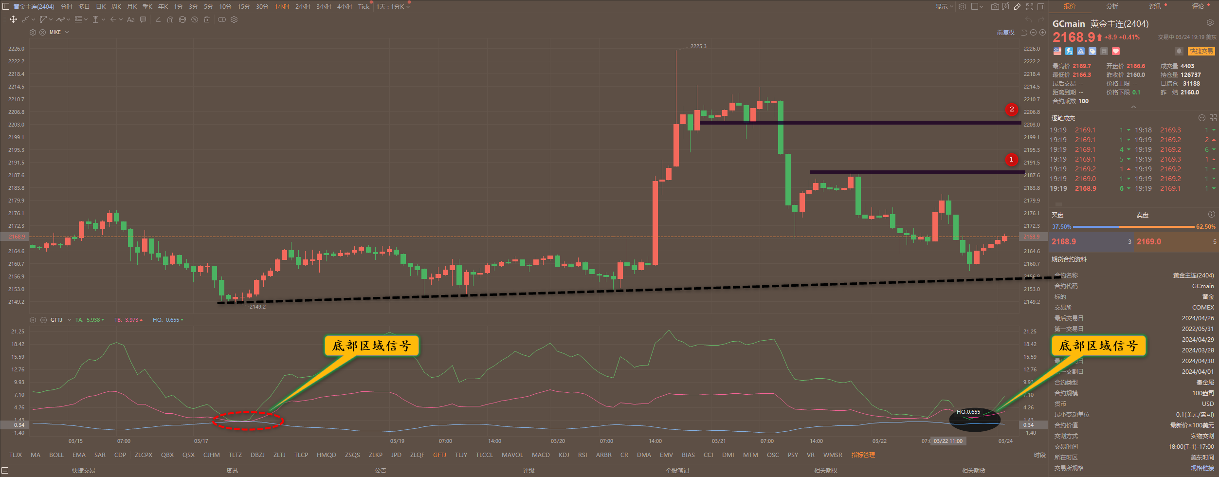 通过对黄金小时图解析得知,上一个交易日先涨后跌短期继续向下回落调整接近下方趋势线的支撑位,我们从下方的附图可以清楚的看到星期五晚间再次出现中短长期筹码集中的迹象说明短期已经到达底部区域上一次出现的时候行情出现了大幅附图动作,星期五晚间再次出现预计将会出现反常的反弹空间,短期上方我们暂且关注12号的压力位,短期在操作上我们继续高空低多思路,具体建议如下: