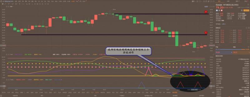 通过对原油4小时图解析得知,昨日行情继续延续下跌走势晚间到达下方78.40一线止跌反弹,我们从下方的附图可以清楚的看到,目前已经到达底部区域已经出现了超级主力抄底动作和绝地反击信号,相对而言得要大幅反弹一波,短期上方我们重点关注12号的压力,但是也不排除继续下探一下,短期在操作上我们继续高空低多思路,具体建议如下: