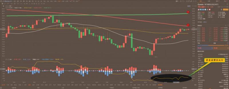 通过对原油2小时图解析得知,昨日行情继续延续反弹走势,目前整体依然是在年线下方运行上一波的下跌还没有收复失地不能算短期已经形成上涨,我们从下方的幅图可以清楚地看到整体市场资金依然是在弱势区运行,还需要时间和空间的磨合继续震荡调整运行,短期震荡筑底的可能性比较大,短期上方我们重点关注12号均线压力,在操作上我们继续高空低多思路,具体建议如下: