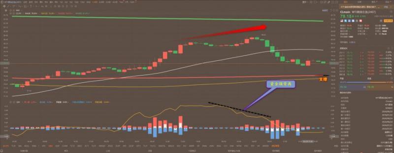 通过对原油小时图解析得知,昨日行情先涨后跌反弹无力冲高回落,自从上周行情在底部区域见底以来行情一路高歌反弹力度比较强劲但是昨日到达高位之后行情依然向上突破但是多头主力资金处于大量出逃的迹象,从而形成诱多的动作目前依然是处于回落调整中,短期我们重点关注下方年线支撑位78.40一线的支撑即可,短期继续形成震荡上行的动作可能性比较大一点。在操作上我们继续重点逢低做多思路不变,具体建议如下: