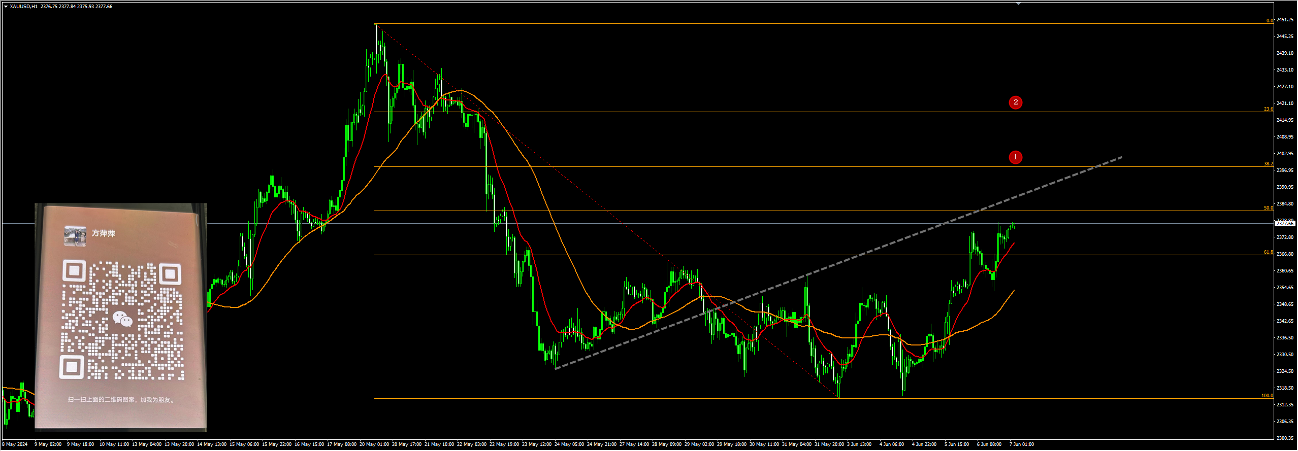黄金2397和2319分别做空,止损各7美金,止盈各20美金。