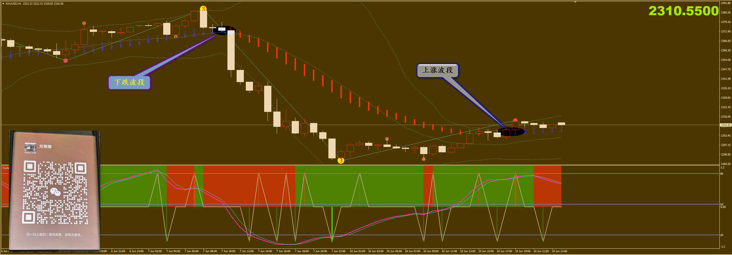 通过对黄金小时图解析得知,昨日行情小幅反弹,行情自从高位回落以来中间还没有出现过像样的反弹动作,同时我们从主图中可以清楚的看到布林带有收口迹象并且站上了布林带中轨短期出现了上涨波段信号,但是下方幅图显示有调整需求说明在底部区域还需要继续横盘震荡,短期上方我们继续重点关注2317和2332一线的压制,下方2288和2278主要支撑,短期应该是还要在这个区间当中运行,短期在操作上我们采取高空低多策略,具体建议如下: