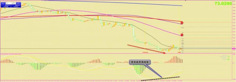 通过对原油小时图解析得知,昨日行情继续延续下跌走势到达下方72.40一线稍微出现了小幅反弹动作,我们从下方的幅图ACD可以清楚的看到进入底部区域出现了底背离迹象并且多头能量柱有所增加说明在底部区域有大资金抄底动作,下方的空间已经不大,短期应该是要震荡调整几天位后期大幅反弹做准备,短期上方我们重点关注12号
